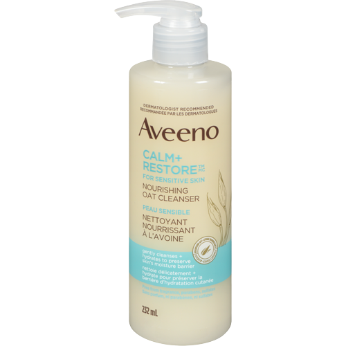 Aveeno Calm + Restore Nourishing Oat Facial Cleanser For Sensitive Skin, Gentle Gel Face Wash With Nourishing Oat & Calming Feverfew, Hypoallergenic, Fragrance- & Paraben-free